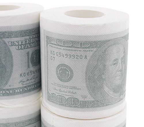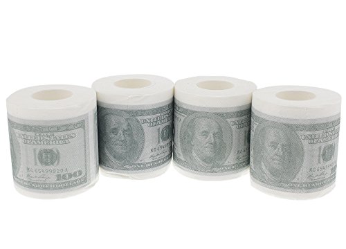 Novelty Toilet Paper - Fake Dollar Toilet Paper $100 Dollar Bill Funny Toilet Tissue - 4 Rolls