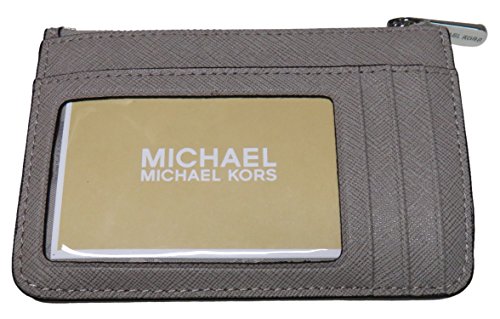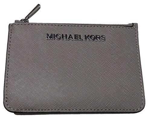Product Description Michael Kors Jet Set Small Top Zip Coin Pouch with ID Holder is crafted in saffliano finished leather and finished with polished SILVER tone hardware. The top zip compartment offers a card slip and a split key ring. The back offers (3) additional slips and a clear ID holder. Just the right size when you're on the go, or to toss into a larger bag. It measures approximately 5 inches (L) x 3.5 inches (H) and has an MSRP of $118.00. 0
