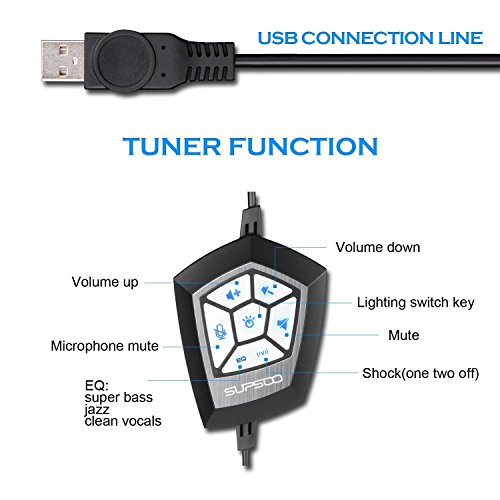 SPECIAL DESIGN: SUPSOO music headphones with 2016 updated high-performance decoding chip, USB surround stereo sound effect and simple and attractive six LED light effects. Xhamme Updated 4D physical vibration, low frequency sound triggering vibration, immersive!