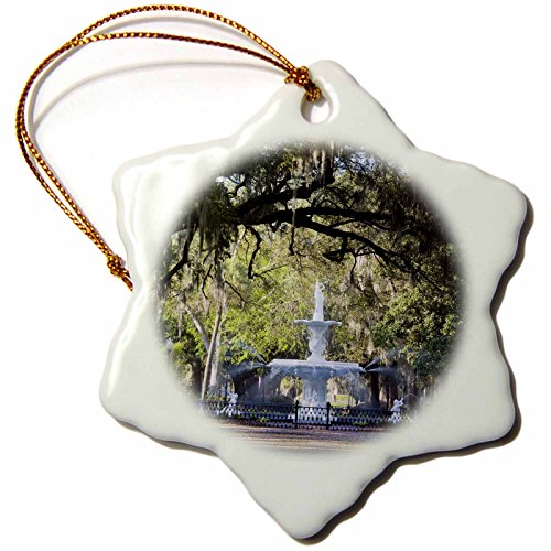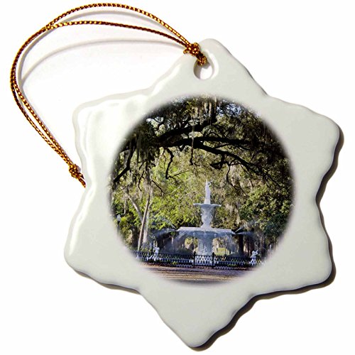 3dRose orn_89349_1 Georgia, Savannah Fountain in Forsyth Park-US11 JEG0234-Julie Eggers-Snowflake Ornament, Porcelain, 3-Inch