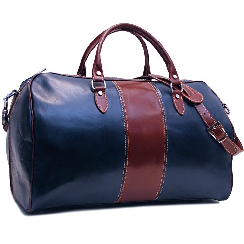 -. Brand : Floto -. Color : Blue and Brown -. Department : mens -. EAN : 0638142644143 -. Feature : 11" x 10" x 21" (Strap is adjustable - 42-48") / Italian Polished Calfskin Leather / Stainless Steel Hardware / Floor-to-floor Zipper for Easy Packing / 100% Cotton/Denim Lining -. Model : 18WESTPORT -. MPN : 18WESTPORT -. PackageQuantity : 1 -. PartNumber : 18WESTPORT -. ProductGroup : Apparel -. ProductTypeName : LAGE -. Title : Floto Venezia Duffle Bag in Blue and Brown Italian Calfskin Leather -. UPC : 638142644143