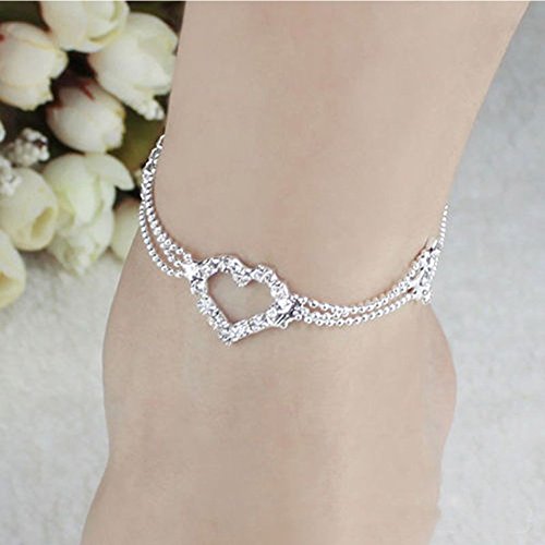 Material: Silver Plated + Diamond + Alloy, Anklet Length: 280mm, Color: silver Weight: 5.42g