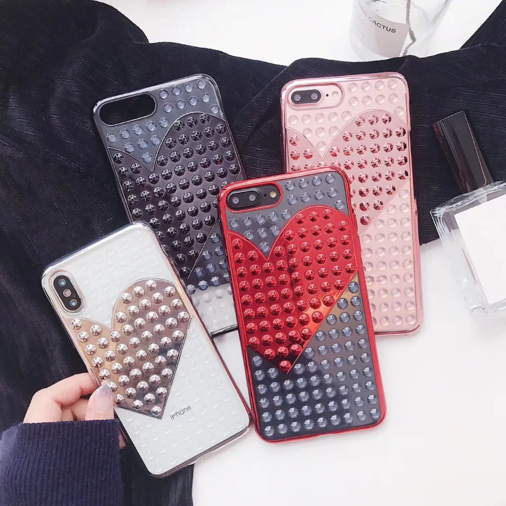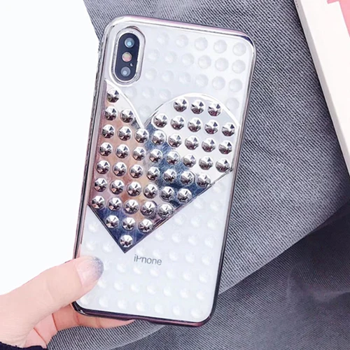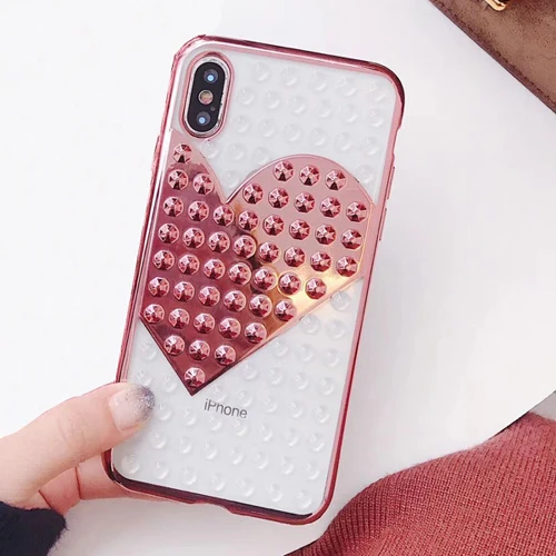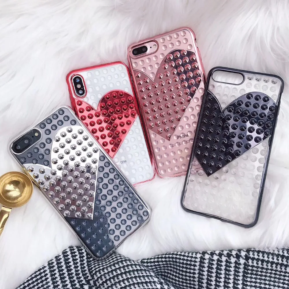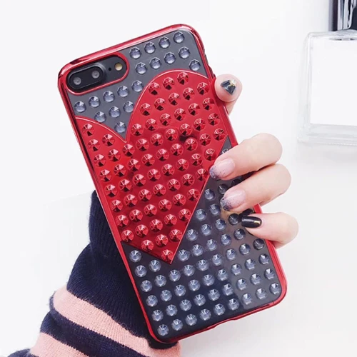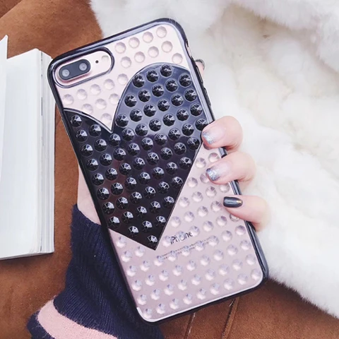 Features:Fashion Electroplate Rivet LOVE heart Soft Phone Bag