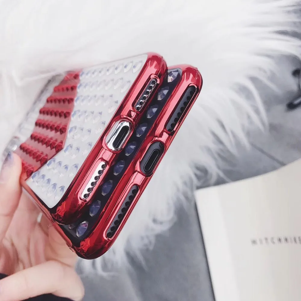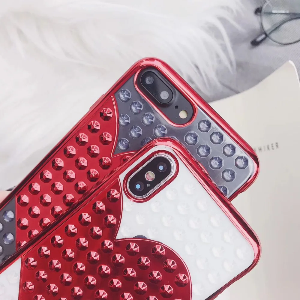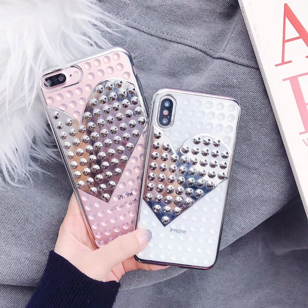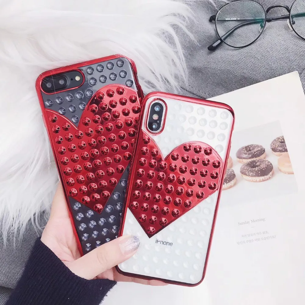 Features:Fashion Electroplate Rivet LOVE heart Soft Phone Bag