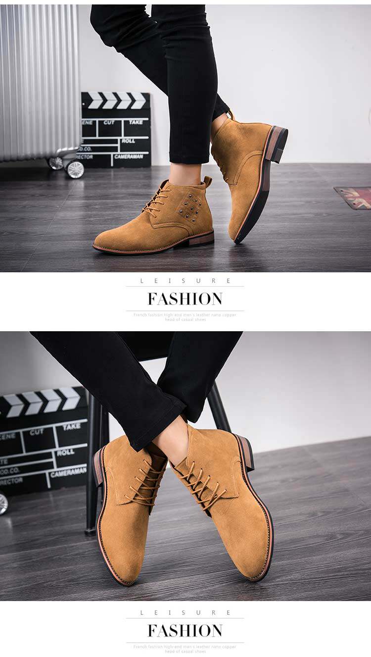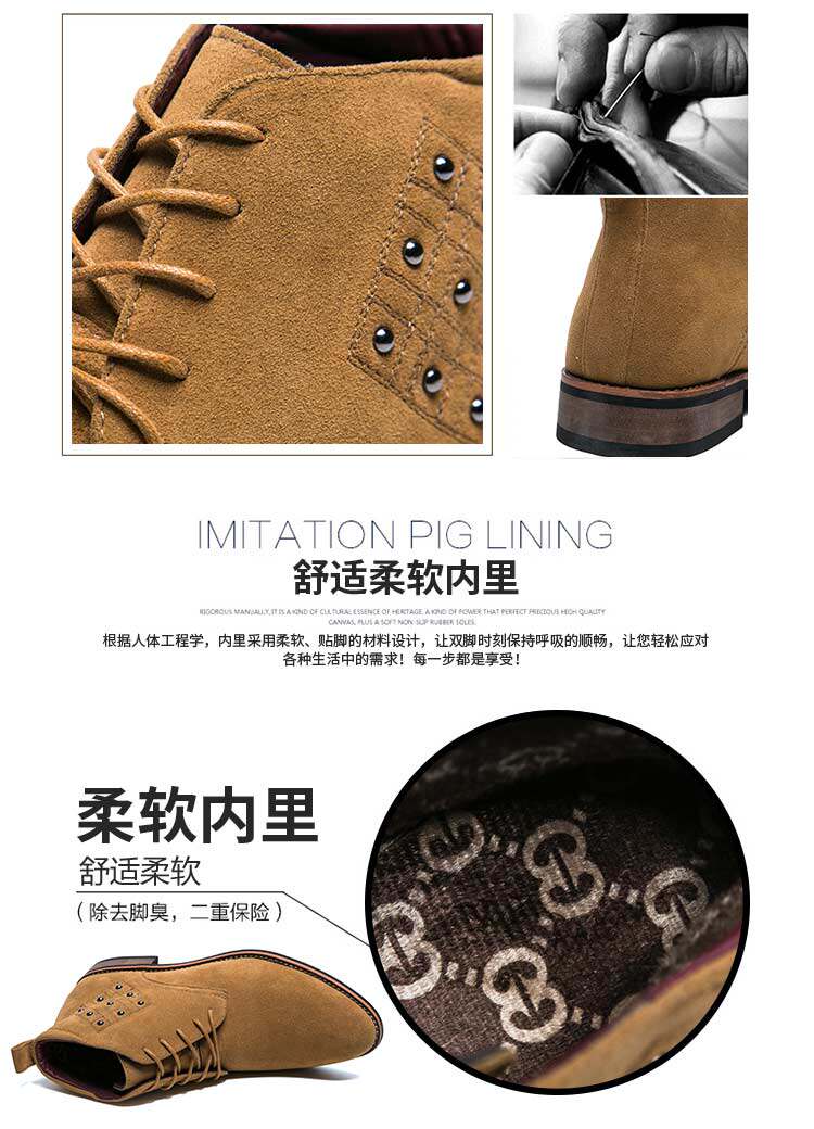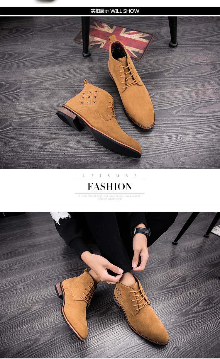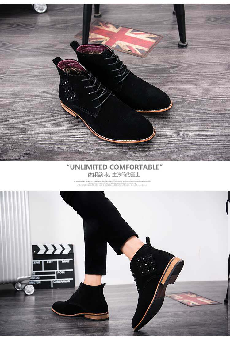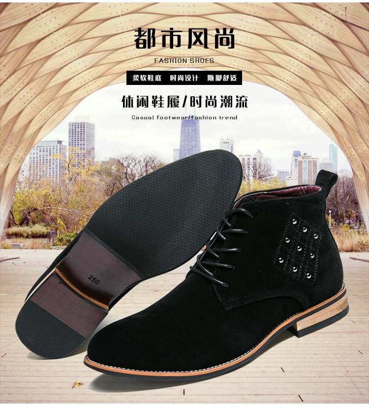 松糕皮鞋英伦男士尖头反绒磨砂皮高帮商务休闲皮鞋夜店发型师增高