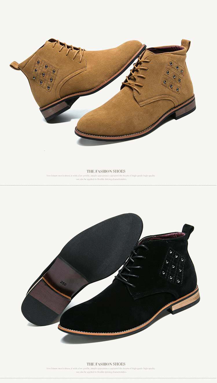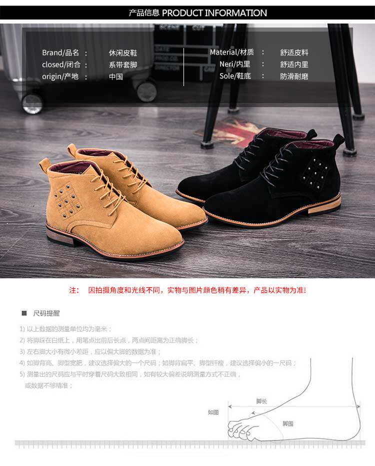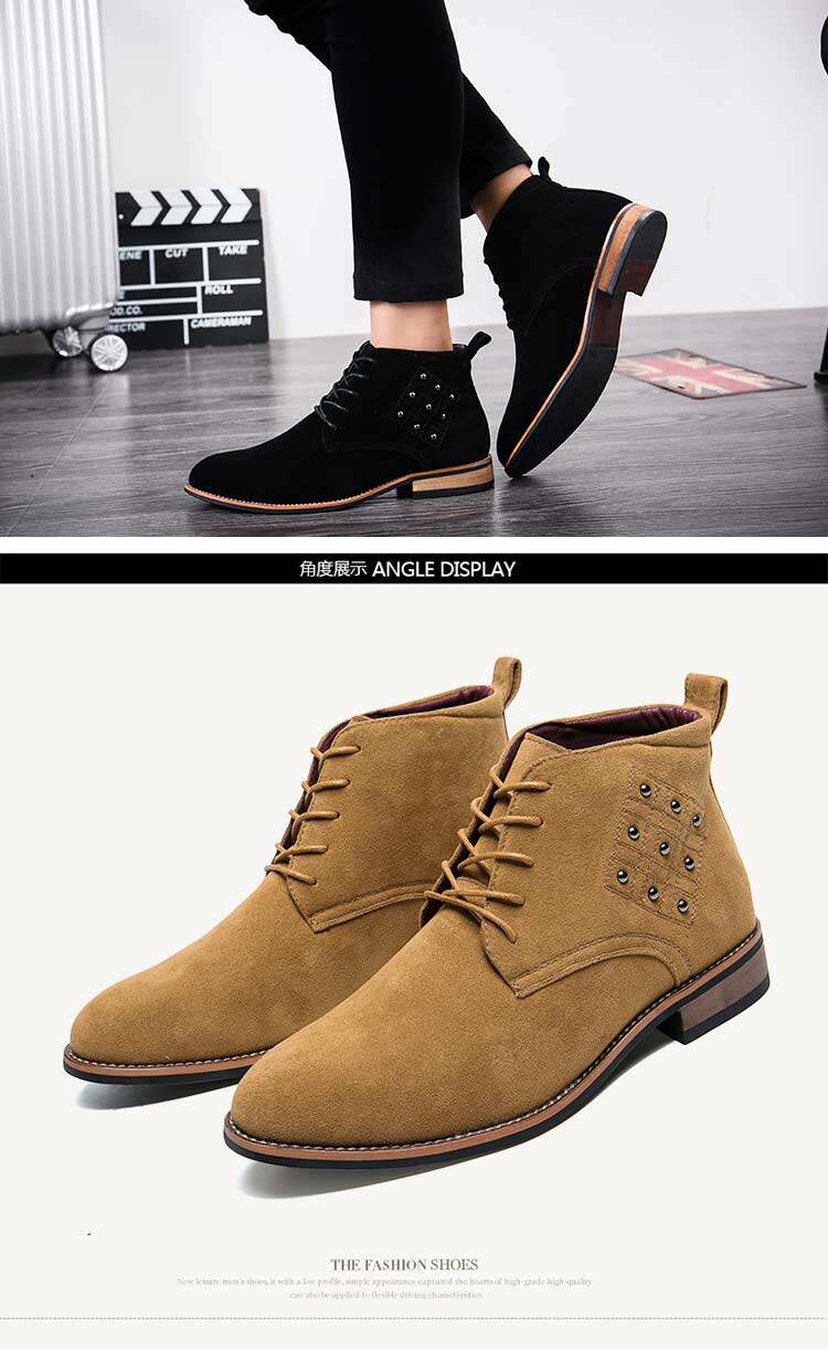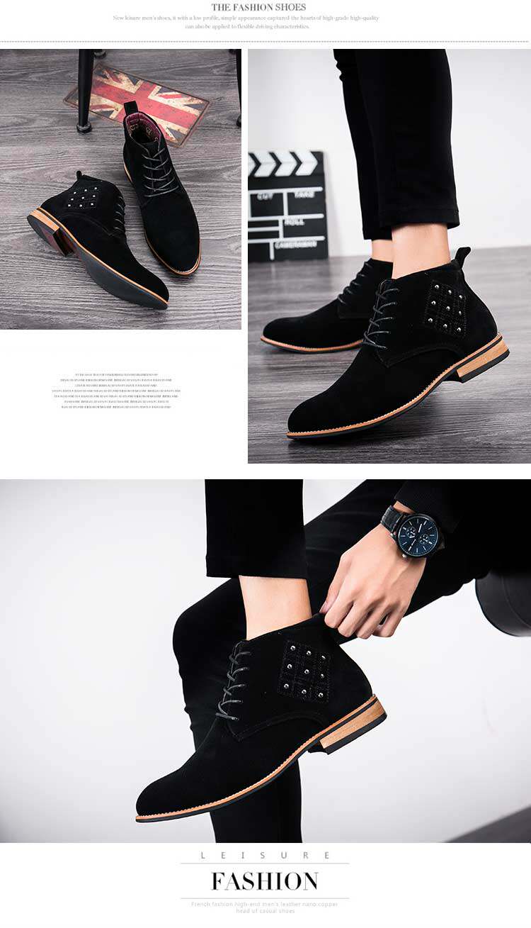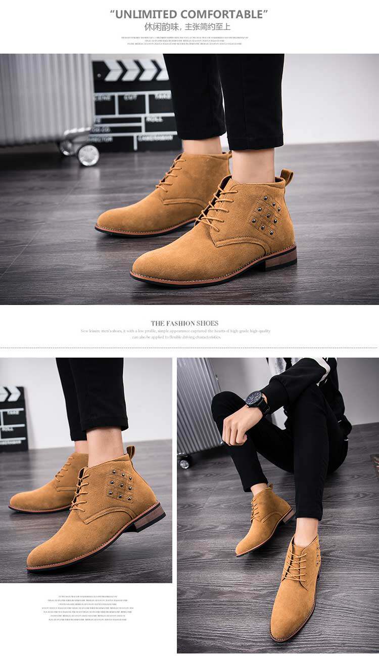 松糕皮鞋英伦男士尖头反绒磨砂皮高帮商务休闲皮鞋夜店发型师增高