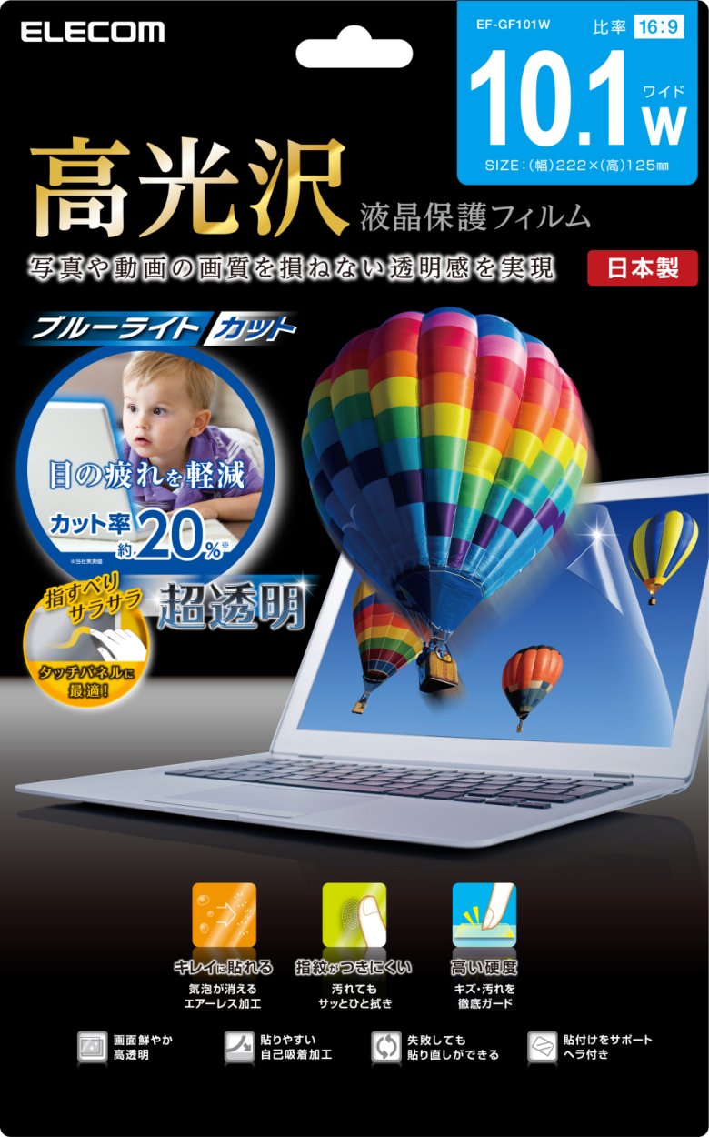 High transparency of about 91.8%, it is a high gloss liquid crystal protective film realizing a transparent feeling that does not deteriorate the picture quality of photos and moving images.