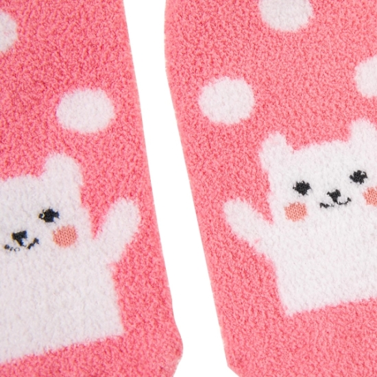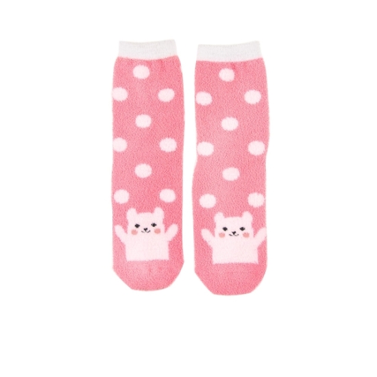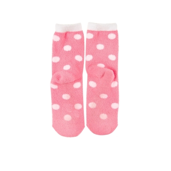 도트나염에 귀여운 얼굴 포인트가 있는 탁텔 수면 양말입니다.