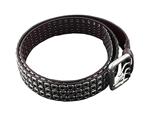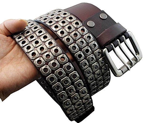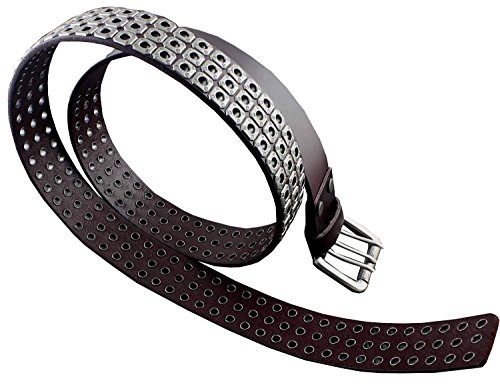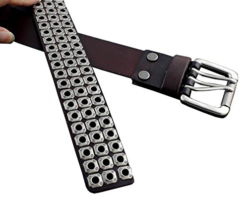 -. Title : Mens Punk Biker Studded Three Hole Real Leather Belt Waistband w/ Roller Buckle