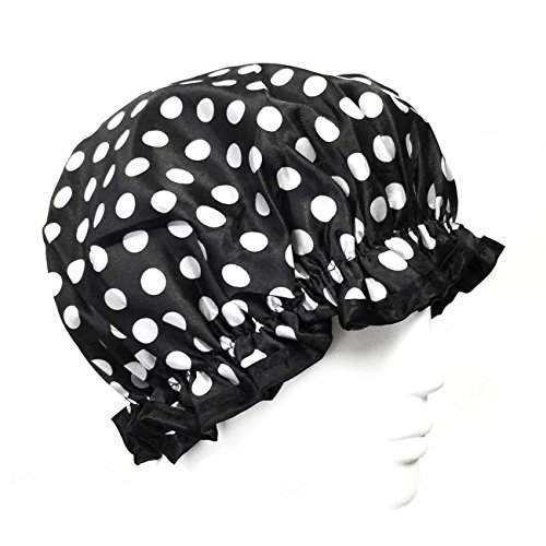 Wrapables Trendy Satin Shower Cap, Black and White Dots