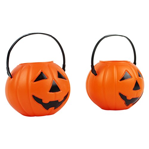 -. Feature : 100% brand new and high quality. / Strong plastic material with sturdy structure for durable use. / Not easy to break.Black handle with light weight for easy and convenient carrying. / Classic pumpkin shape and pumpkin face design with gorgeous color. / Specially designed for Halloween. Great as party favors or treats.