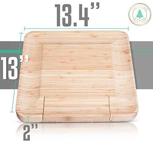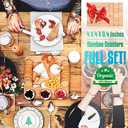 ✔ BEST ADDITION TO EVERY KITCHEN - LARGE (13"x13"x1.5") Natural grain finish with warm bamboo color promises a stunning addition to your home decor. We've also included FREE (4"x4"x0.4") matching set of bamboo drink coasters to complete your serving set!