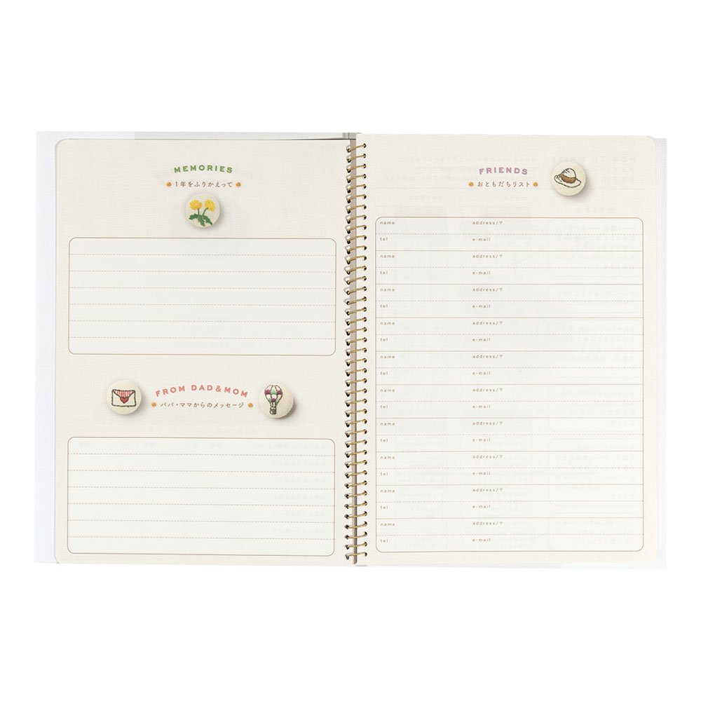 It is a child-rearing diary that allows you to fill in the growth of your baby every day up to age.