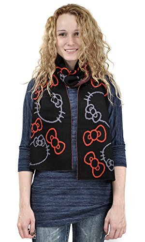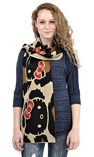 Hello Kitty women's knit scarves. Assorted print designs. 100% acrylic. Soft knit fabric. 68" long by 10" wide. Officially licensed.