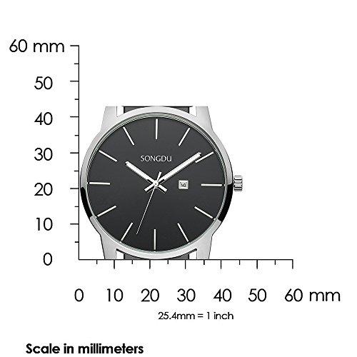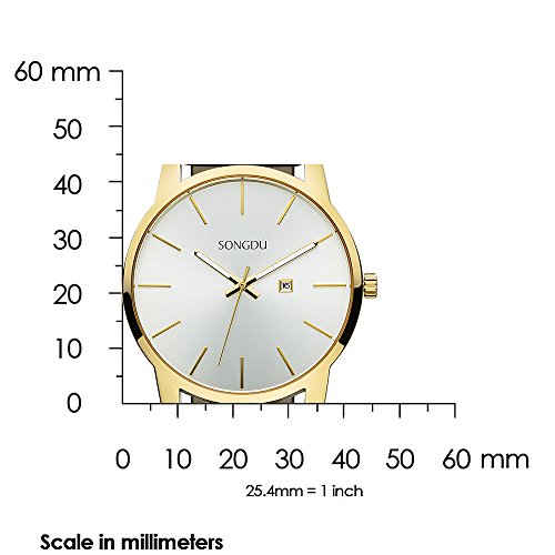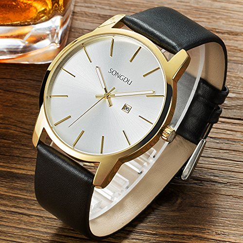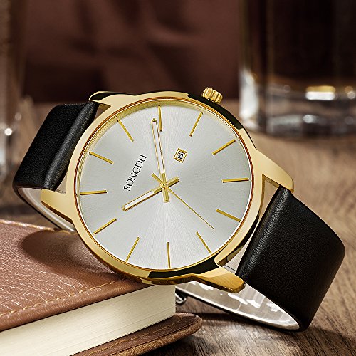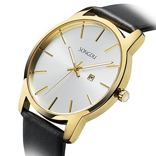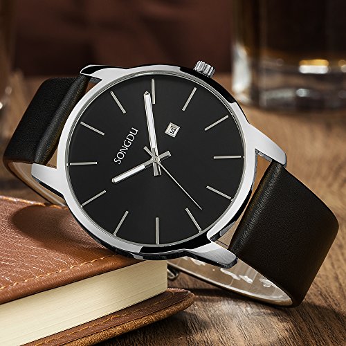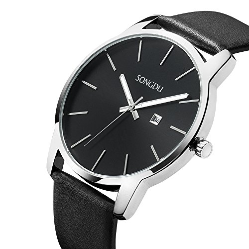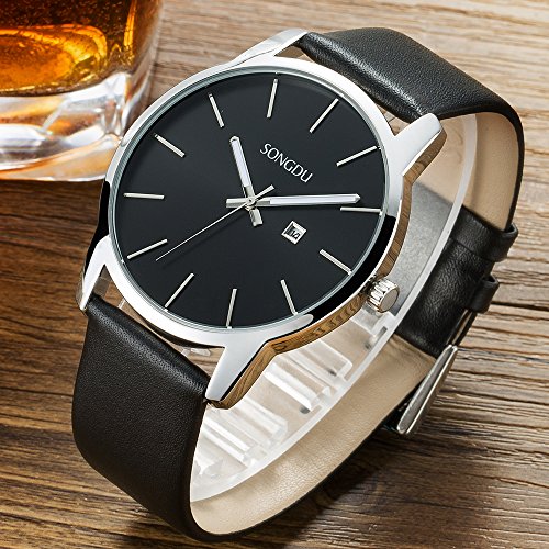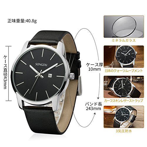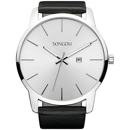-. Title : SONGDUメンズ ビッグフェース シンプル レザーバンド 腕時計 クォーツ 日付 本革バンド ウォッチ