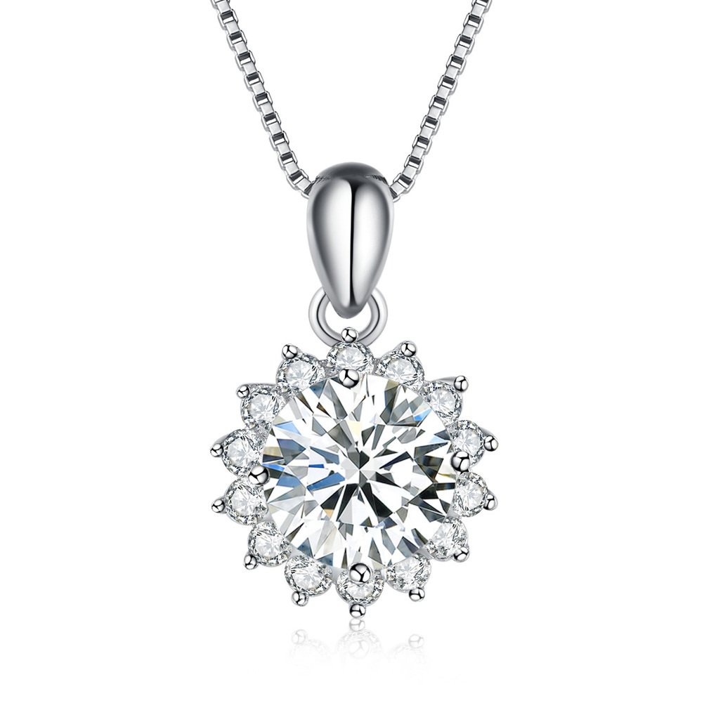 Necklace full of luxurious feeling with a large grain of 8 mm CZ and a small edge around the center.
