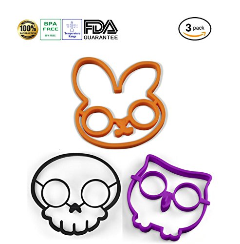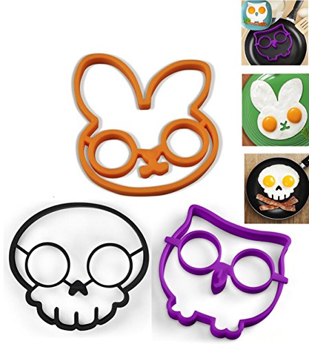 Tenta Kitchen Silicone Egg Ring Mold, Pancake Mold Set -Rabbit, Owl and Skull (Pack of 3)