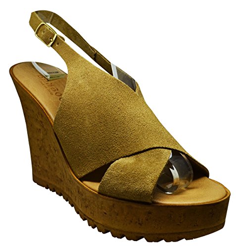 Binding : Apparel Product Description Upgrade your shoe collection with these wedge sandals by Bamboo. These wedges feature a strappy toe, and adjustable ankle strap with buckle, criss cross vamp design, high cork wedge with cushioned insole.. Heels 4.5", Platform 1.25" 0