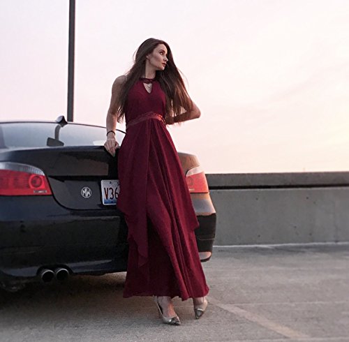 Noctflos Women's Sleeveless Halter Neck Vintage Burgundy Chiffon Maxi Dress with Sequins
