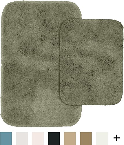Finest Luxury Ultra Plush bath rugs by Garland Rug are soft and stylish. The super soft plush design lends a classic understated touch to your bath coordinates collection. This 2-piece rug set comes with both a 17 inch. x 24 inch. Bath mat and a 21 inch. x 34 inch. bath mat. The soft pile of this rug is made of 100% Nylon and features a washable skid resistant latex backing. Like all products made by Garland Rug these Finest Luxury Ultra Plush rugs are proudly made in the USA.Feature