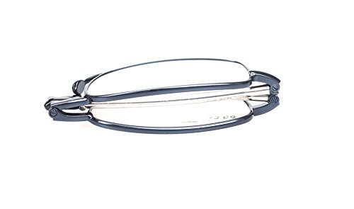 SOOLALA Metal Aolly Frame Folding Magnifying Compact Reading Glasses Reader w/ Case, Blue, +3.0D