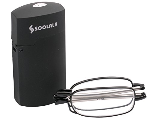 SOOLALA Metal Aolly Frame Folding Magnifying Compact Reading Glasses Reader w/ Case (Classic Black w/case, 1.75)