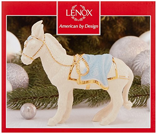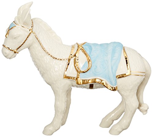 Lenox offers timeless designs that have been a treasured part of American holidays for generations. Unmatched quality and hand craftsmanship result in exquisite pieces that bring a special glow to your home. No other gift expresses the joy of the season more than specially-chosen Lenox collectibles for the people who you cherish most. Best of all, these products are created by Lenox, the name more closely associated with holiday entertaining than any other. The confidence that Lenox has in the unmatched durability of every item they offer is backed up by a lifetime breakage replacement policy to guarantee many years of enjoyment to each customer. The Donkey figurine is a perfect addition to your First Blessings Nativity set. He wears a lavishly gold accent bridle and saddle.Feature