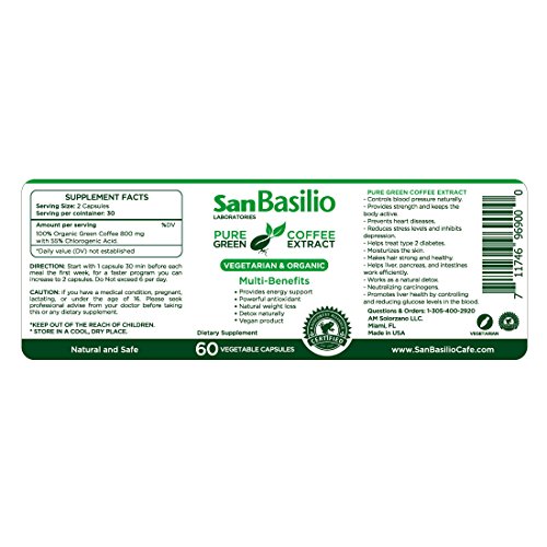 Product DescriptionGreen Coffee Supplement with Multi-Benefits by San Basilio Laboratories (San Basilio since 1923) a trusted name.0