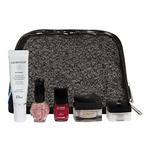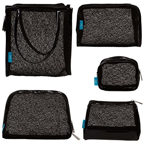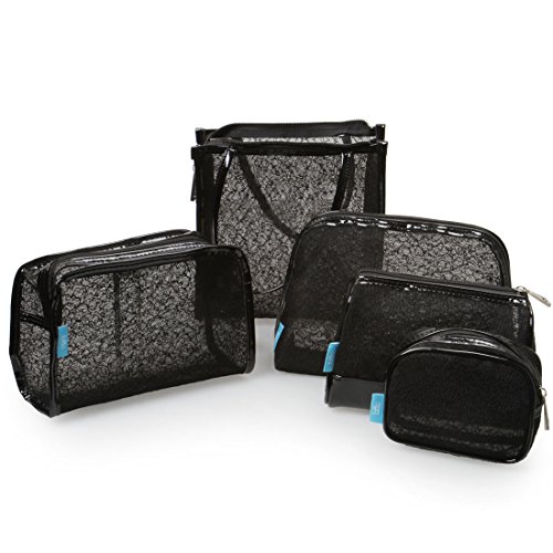 BMC Womens 5 pc Black Mesh Lace Style Design Mixed Size Sundry Travel Make Up Pouch Cosmetic Bag Set