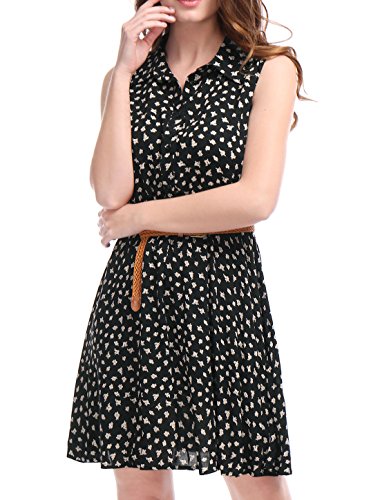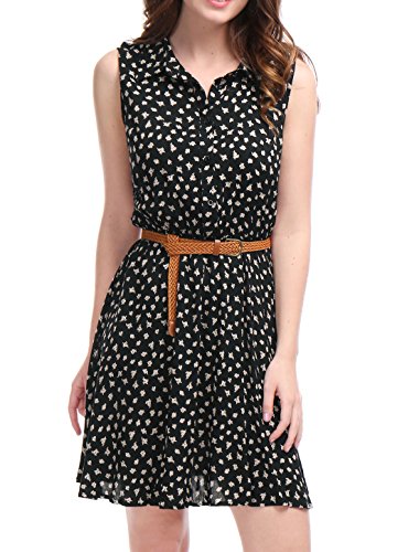 • Embrace your femme style in this sleeveless dress. It features a half buttoned placket, allover cat print / playful daisy / flower print, and basic collar. A braided leatherette belt decorates its elasticized waist. You can catch us wearing ours with flats for a day spent soaking up the sunshine.