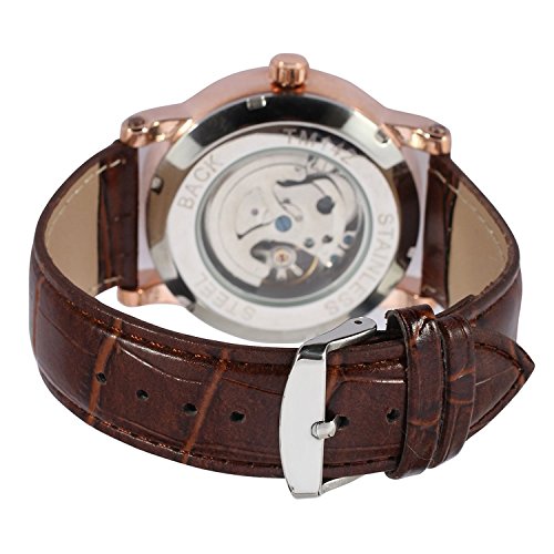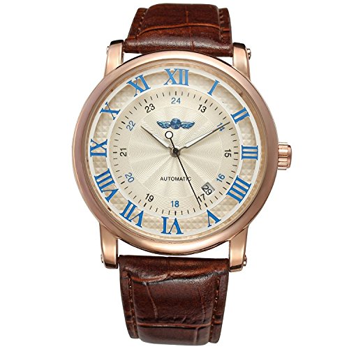 GuTe Mechanical GuTe출품 손목시계 맨즈 자동 감기 캘린더 날짜 로마숫자 가죽 밴드 심플 빅 기계식 블루