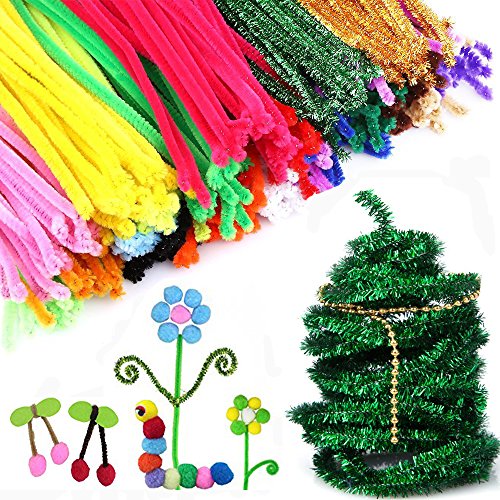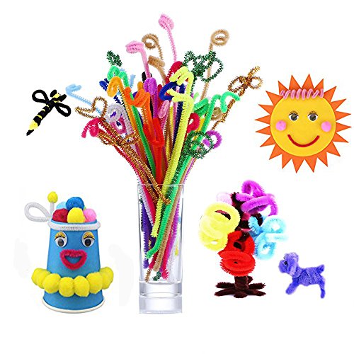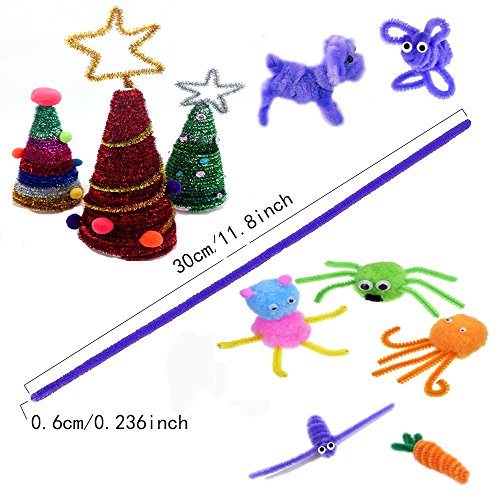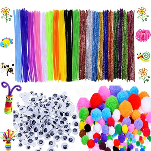 All in one Package -Package includes: 250 x pompoms, 150 x self-sticking wiggle eyes, 100 x fiber pipe cleaner, 100 x metallic pipe cleaner chenille stems 6 mm x 12 Inch