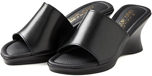 -. Title : (セレブル) Celeble 日本製 本革 オフィスサンダル レディース ヒール 美脚 ウェッジソール ミュール 黒
