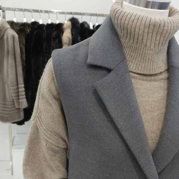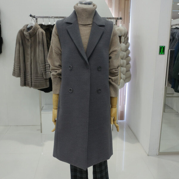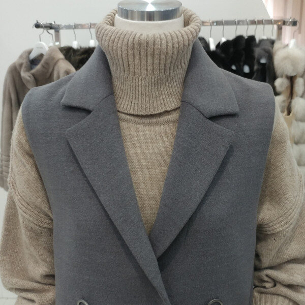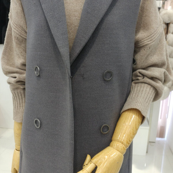 롱이쉬한 기장감으로 격식미를 높였으며 더블단추트리밍이 세련미를 더해주어 겨울내내 즐겨입으실 베스트입니다