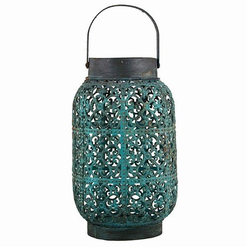 -. Title : TANAN TEAL LANTERN 6.25x14.5"h