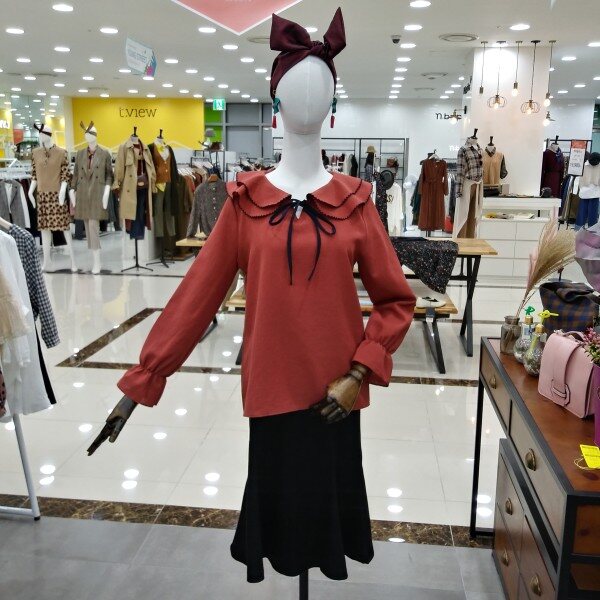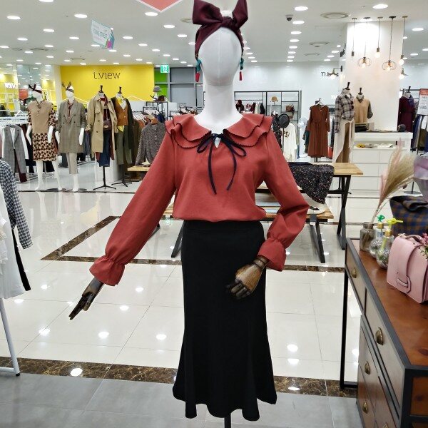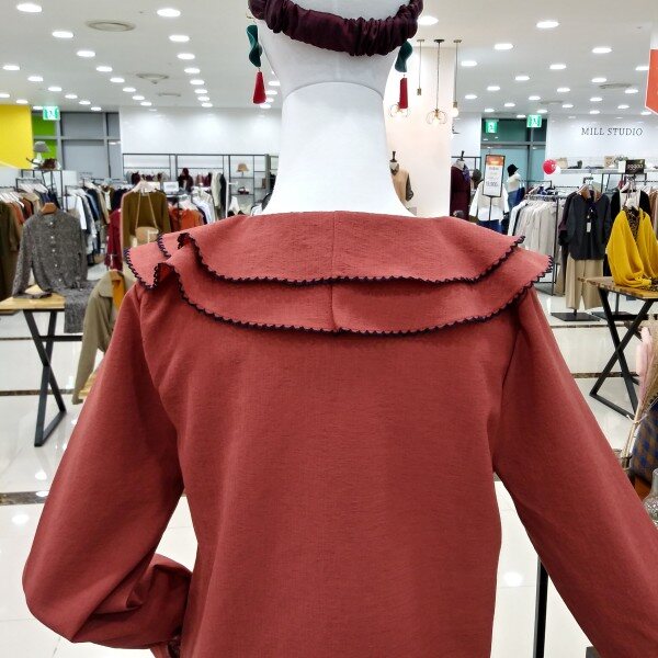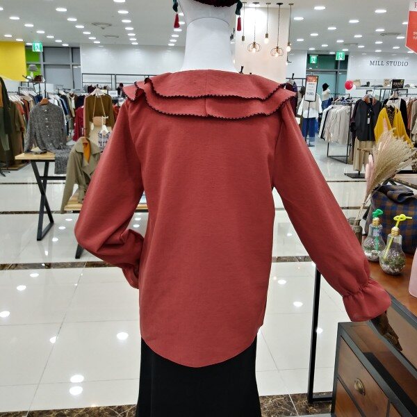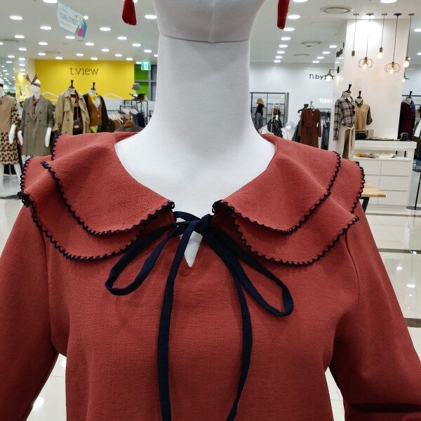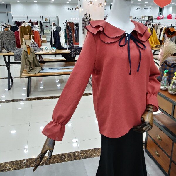 이중카라 라인과 리본장식으로 귀여우면서 깔끔한 라인의 블라우스이에요