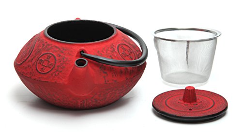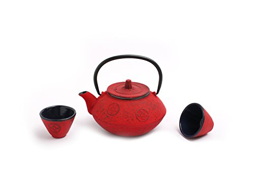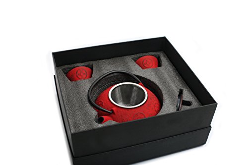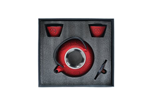Guro Cast Iron Sigma Teapot 27 Ounce Tea Set (Red)