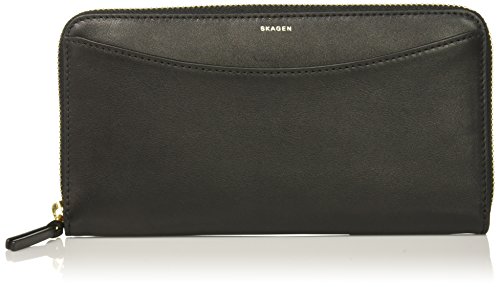 -. Title : Skagen Continental Leather Zip Wallet - black Wallet