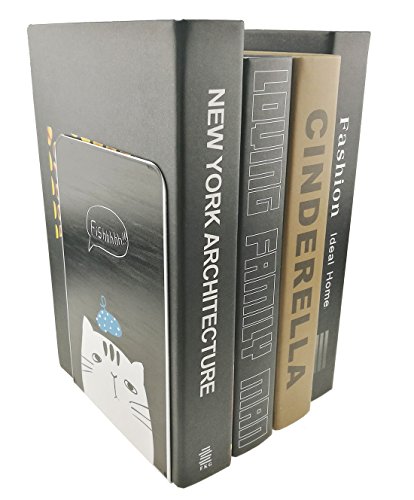 Studio : UniGift Publisher : UniGift Binding : Kitchen Product Description Introduction: Every time when you see orderly bookshelf, it is will stimulate to the desire to read books, then you will be a man of deep learning. Unique design, give you special journey in the ocean of books. Keeps books vertically organized and in place so books don't easily tip. Decorate your study room and Keeps your books organized and in view. keeps scratches to a minimal and prevent slipping. Keeps magazines, books, catalogs and binders neat in the bookshelves and all in view. Perfect for housing DVD's, video games, or CD's. Specification: Size:as photo show Material:metal Package Include: A Pair Of bookends