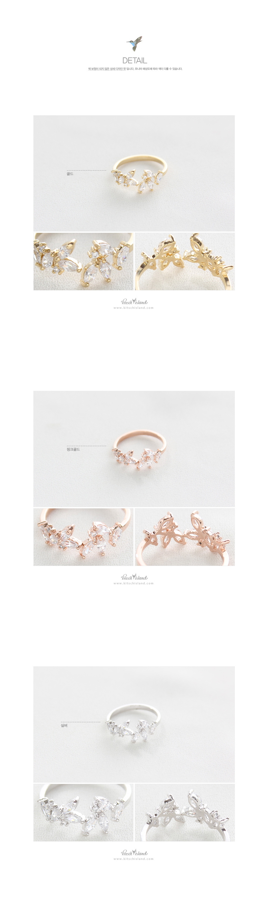 목걸이 제품보다 조금 더 촘촘히 잎새들이 디자인된 반지입니다.