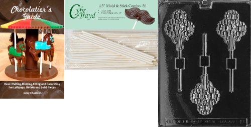 Cybrtrayd 'Bunch of Daisies Lolly' Fruits and Vegetables Chocolate Candy Mold with 50 4.5-Inch Lollipop Sticks and Chocolatier's Guide