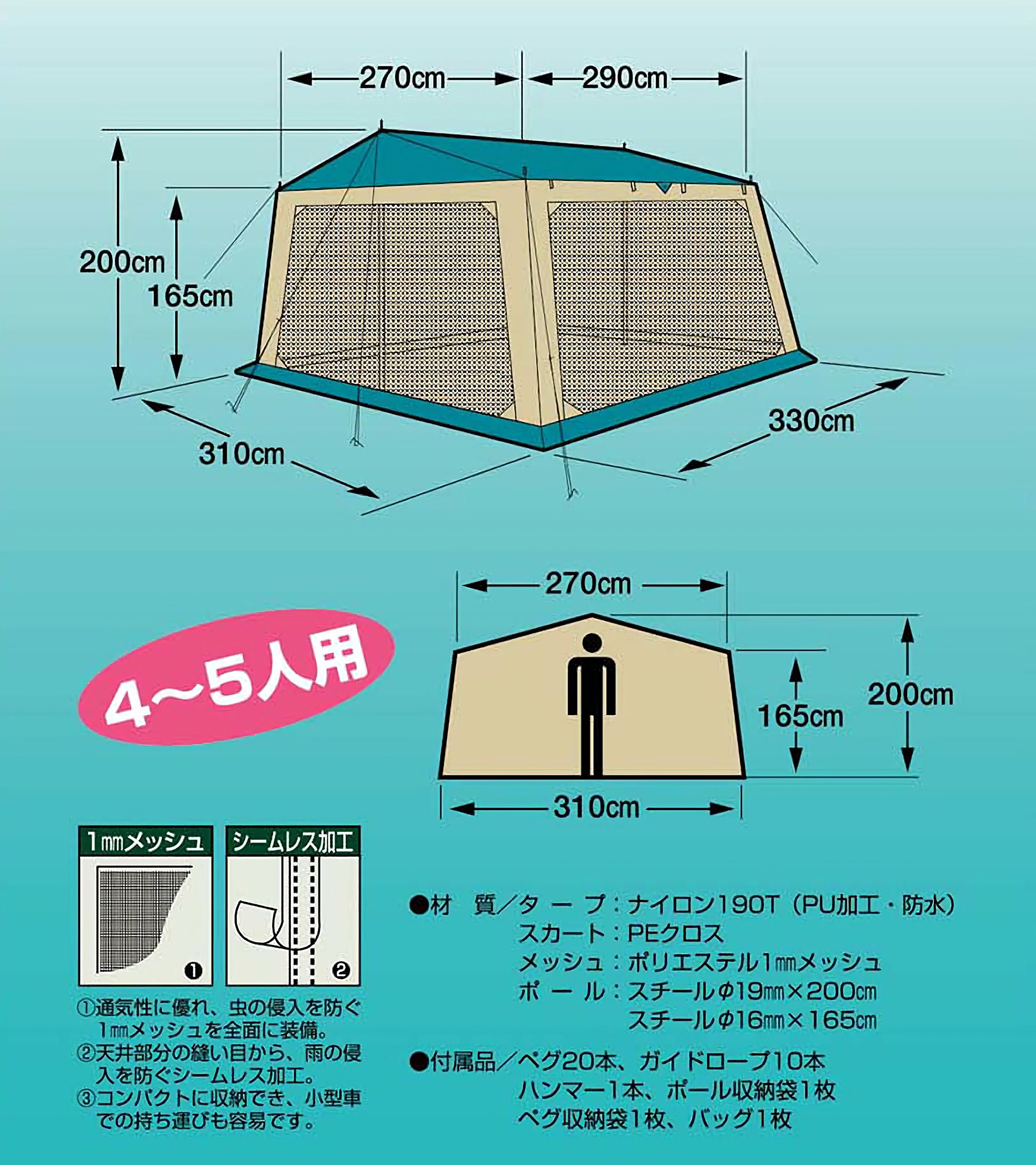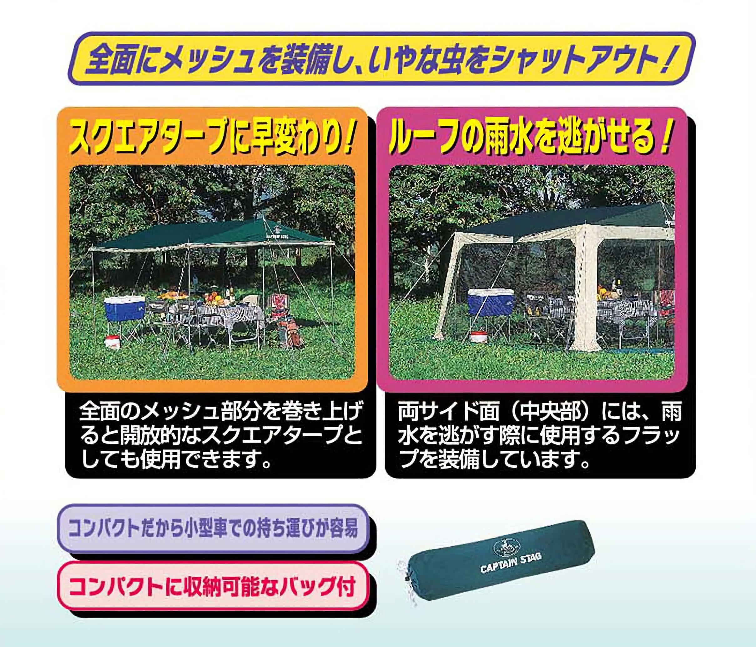 ● It is mesh tarp which can spend comfortably to prevent invasion of unpleasant insects and sunlight.
