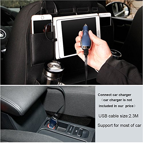 Car Backrests Protect with 8 Separate compartments provide quick access: for 3 USB mobile phone charger, iPad mini (need a Ipad case ), 2 phones, 2 bottles, tissue box, umbrella,other