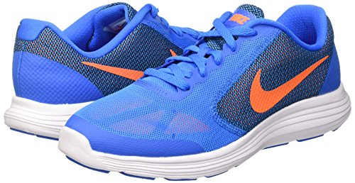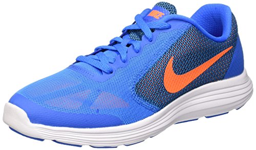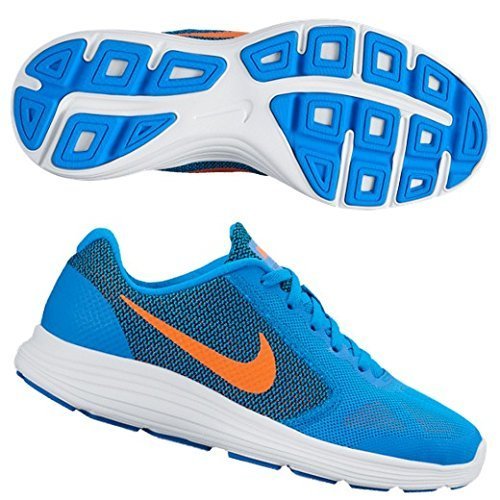 The Revolution 3 Kids running trainer has taken the stage by storm. The lightweight trainer has mesh upper for a nice supportive feel with a bit of synthetic touch on it for a great design. Flex grooves channelled for cushion support trough full-length foam midsole for natural ride. In addition, the textile lining for enhanced cushioning, comfortability and durability is the perfect blue trainer for your kid.Feature