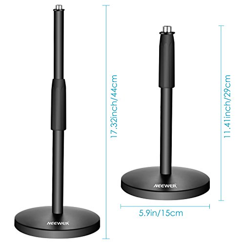 -. Title : Neewer Desktop Microphone Stand Table Desk Mic Stand with Weighted Base and 5/8-inch Thread, Adjustable Height 11.41-17.32 inches / 29-44 centimeters for Meetings, Lectures and Podcasts (Black)
