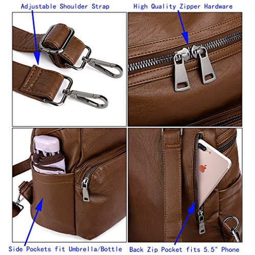 -. Brand : UTO -. Department : womens -. Feature : HIGH QUALITY - Ultra soft synthetic washed leather with tungsten steel color hardware. / WELL DESIGN - Detailed streamlined stiching. Full-lined black fabric lining. 2 adjustable/removable back straps and 2 top handles. / LARGE CAPACITY - Double Zipper on Main Zipper Compartment is convenient for opening in two directions. Interior: 1 zipper pocket and 2 open pockets. Exterior: 1 front zipper pocket, 2 side magnetic pockets and 1 back P.R.Ivate zipper pocket. / EXTREMELY PRACTICAL and MULTI-FUCTIONAL - It can hold a 13.3" MacBook Pro, tablet or a laptop 12" and under. Exterior pockets can hold your iPad/Smartphone/Water Bottle/clothes/books/pens/wallet/umbrella and other essential items. / DIMENSIONS - 13.38"L x 6.10"W x 12.79"H. Weight: 2.49 pounds. Adjustable back straps length: 40.15". Top Loop Handle drop: 3.14". -. ProductGroup : Shoes -. ProductTypeName : HANDBAG -. Title : LARGE SIZE-UTO Women Backpack Purse PU Washed Leather Ladies Rucksack Shoulder Bag