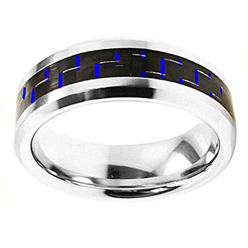 -. Binding : Jewelry -. Brand : FF Jewelry -. Department : womens -. Feature : Free Gift Box & Bag with Every Purchase / Comfort Fit & Hypoallergenic / Free Standard Shipping on Orders Over $50 / 30 Day Money Back Guarantee -. ProductGroup : Jewelry -. ProductTypeName : FASHIONRING -. Title : 8mm High Polished Beveled Edge with Black and Blue Carbon Fiber Inlay Designer Cobalt Wedding Band