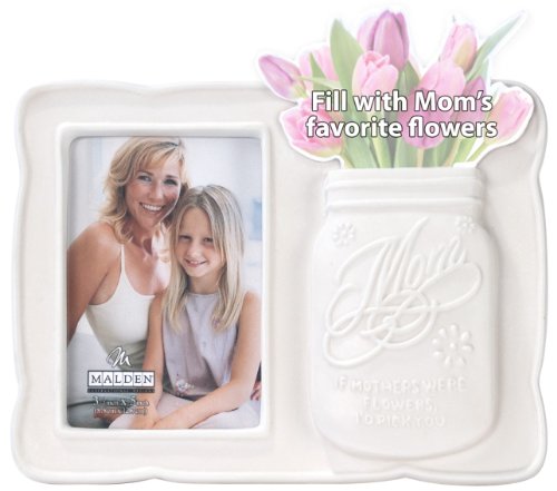 Malden International Designs Ceramic with Mason Jar Look Vase On Frame Mom Picture Frame, 3.5x5, White