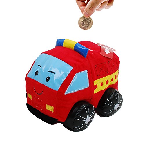 -. Title : Linzy Plush Fire Truck Coin Bank with Siren Sound, White 8"