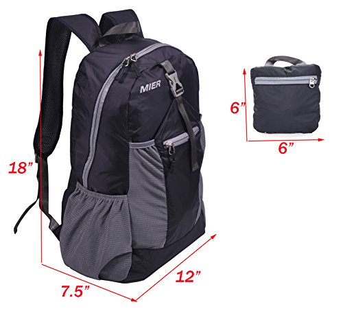 -. Title : MIER Lightweight Foldable Travel Backpack Water Resistant Hiking Daypack for Men, Women, Kids, Black